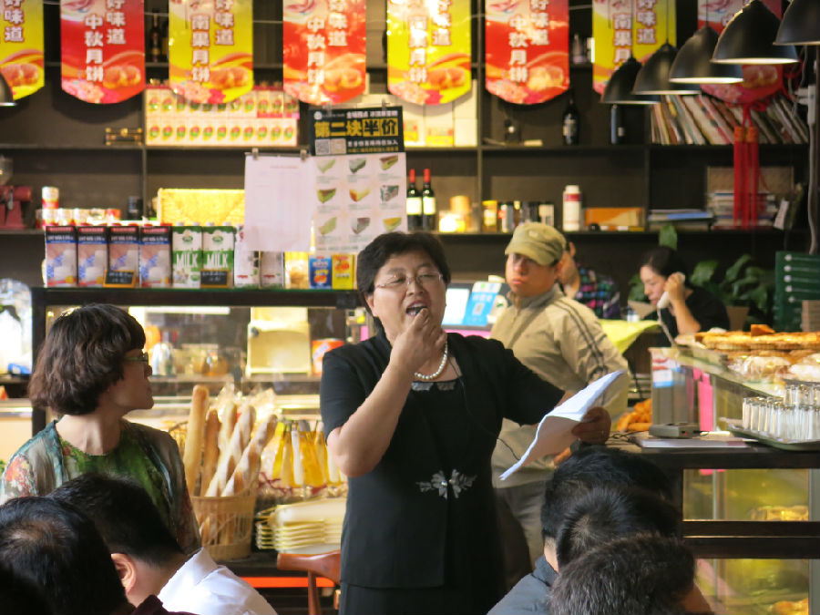 ▲東道主孫冰儀為大家分享“如何把進(jìn)店顧客留住10分鐘”學(xué)習(xí)成果的應(yīng)用
